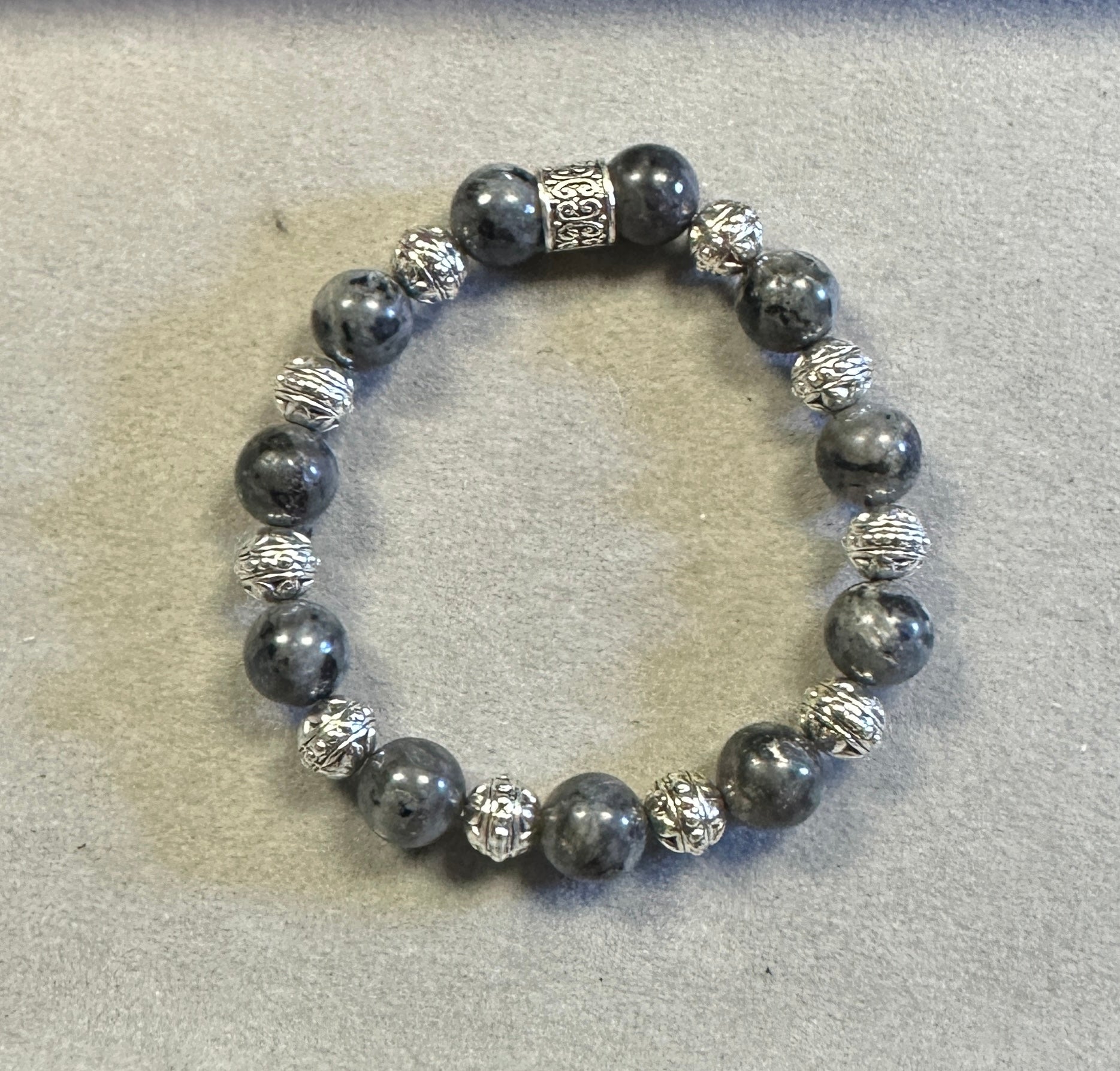 Labradorite is known as the stone of transformation, often associated with strength, protection, and awakening intuition. Paired with Tibetan silver, this bracelet is both stylish and meaningful—perfect for collectors or anyone seeking jewelry with energy and intention.