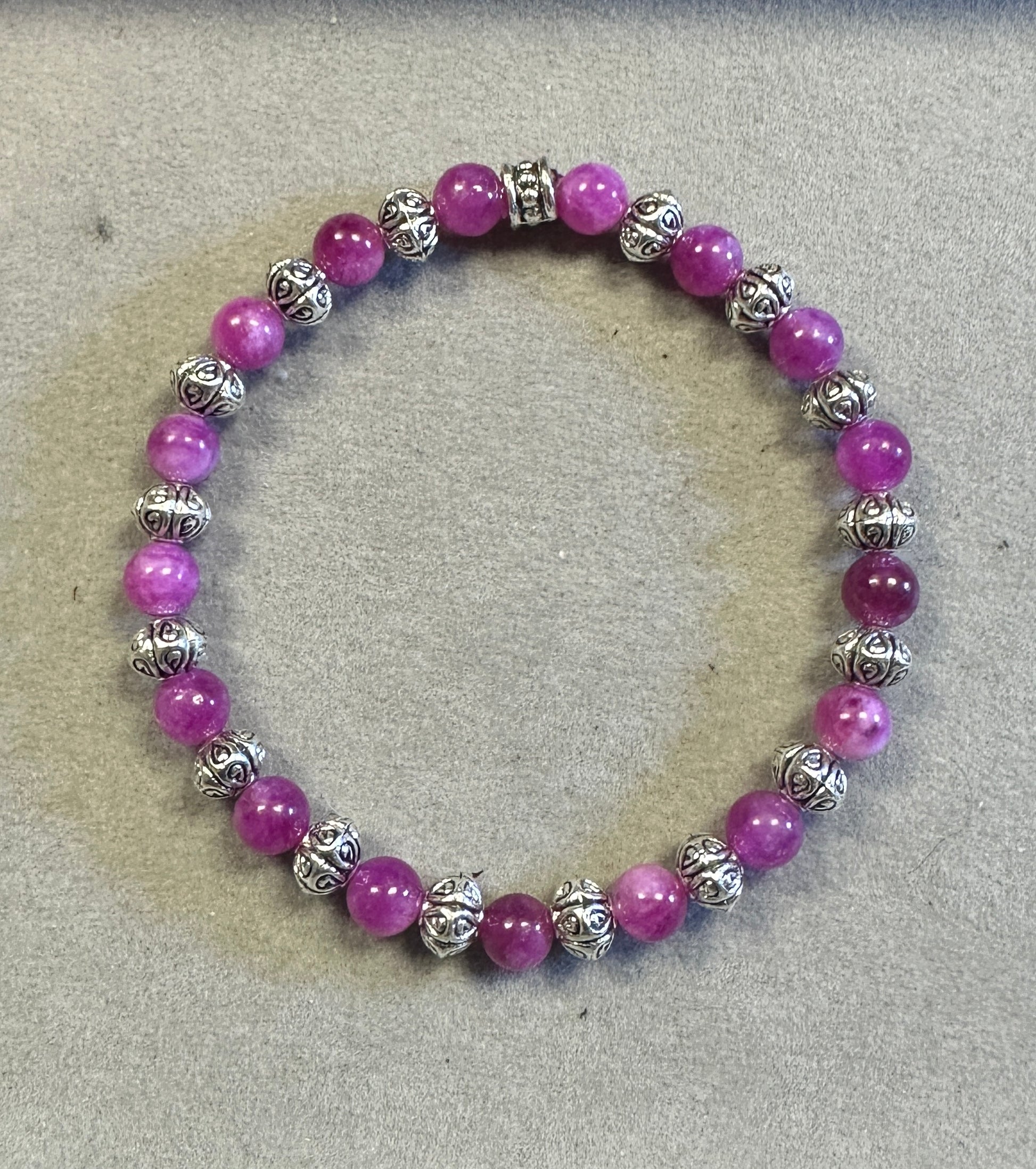 Pink Tourmaline 6mm with Tibetan Silver Bead Natural Gemstone Stretchy Bracelet